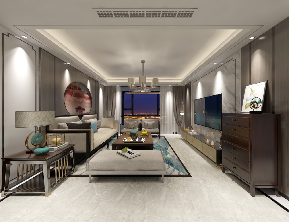 郑地璞园135㎡三居室新中式装修效果图