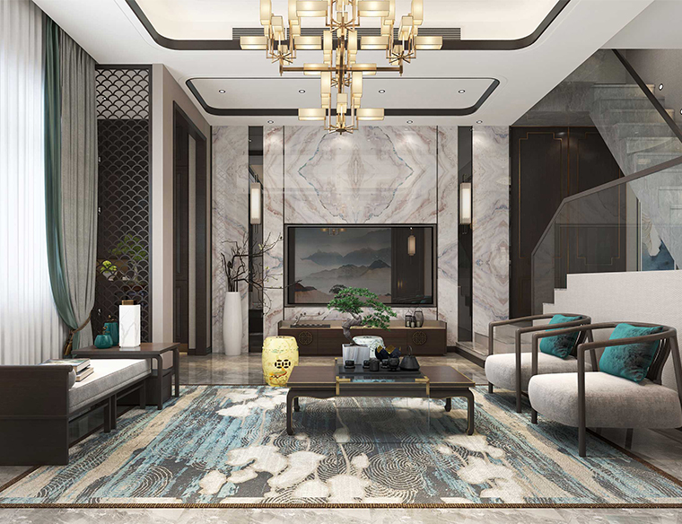 新田城300平联排别墅新中式风格装修案例效果图