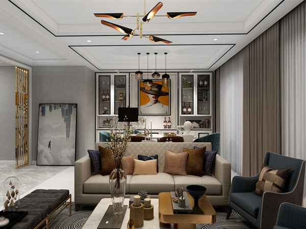 平原新区西西里传说160平轻奢风格装修效果图