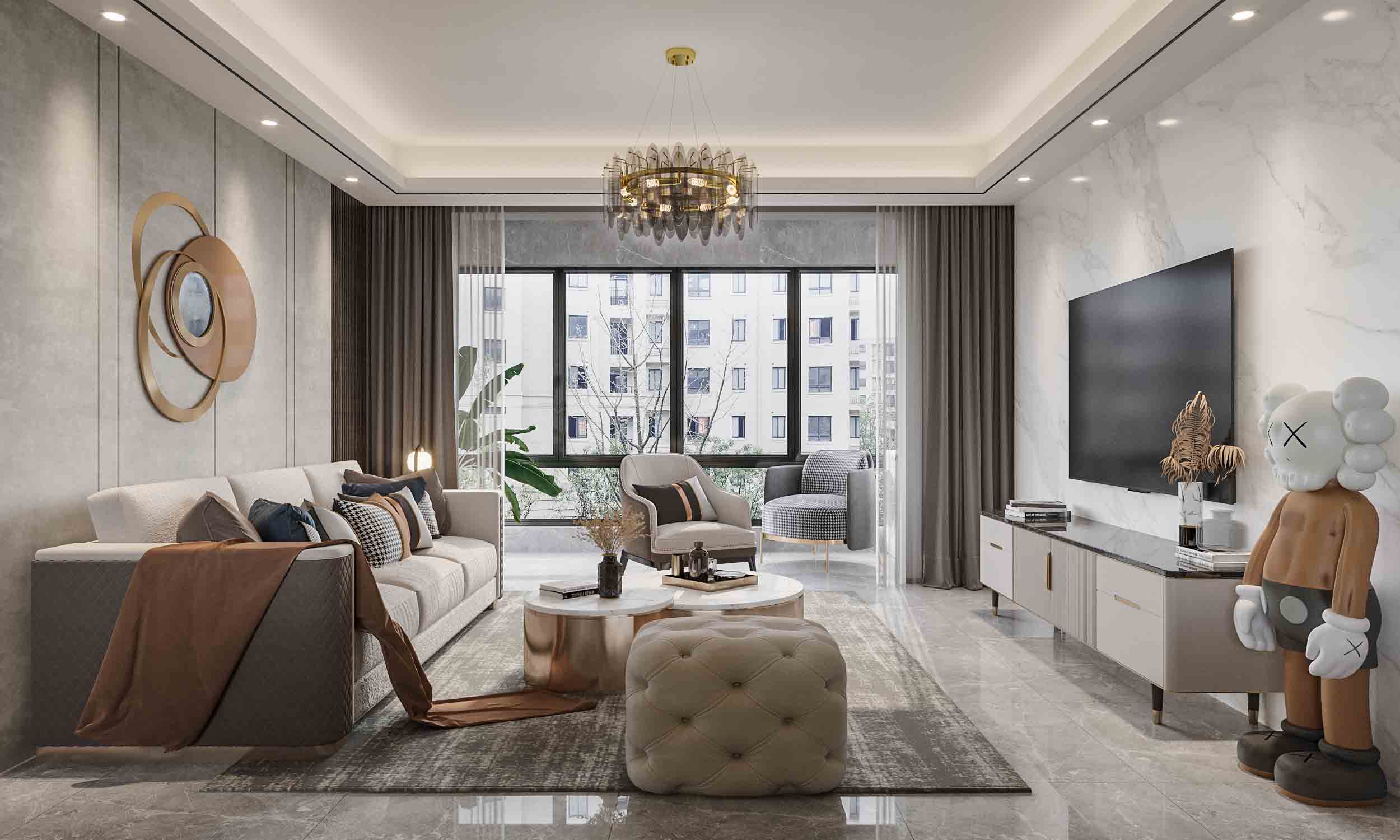 中岳新天地120平现代轻奢风格装修设计案例效果图