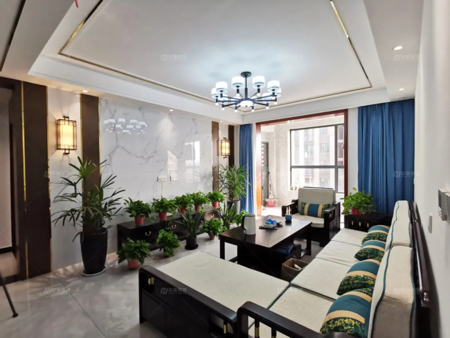华埔实景案例048期丨长基花园140平新中式,山水有相逢!