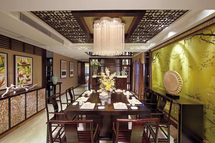 163㎡绿地海珀兰轩古色古香新中式设计装修效果图